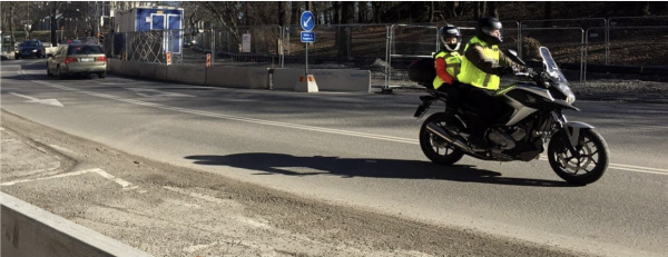 Du kör motorcykeln som fotot är taget från. Gäller några speciella regler i cirkulationsplatsen på bilden?