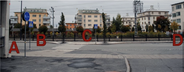 Du närmar dig korsningen i långsam hastighet, nästan krypkörning, var finns den största faran?