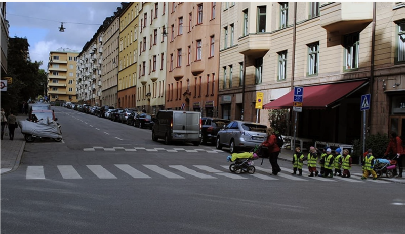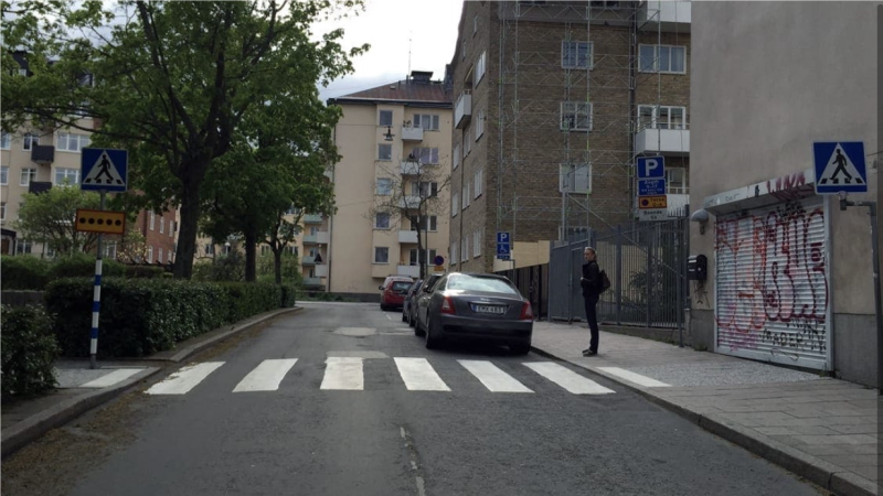 En 6-åring har lärt sig att alltid korsa vägen på ett övergångsställe. Är barnet säker eller kan en förrädisk situation uppkomma?