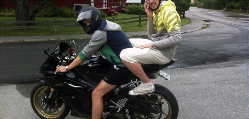 Din kompis som är 24 vill åka med som passagerare på din MC men saknar hjälm. Kan du som förare straffas om polisen stoppar er?